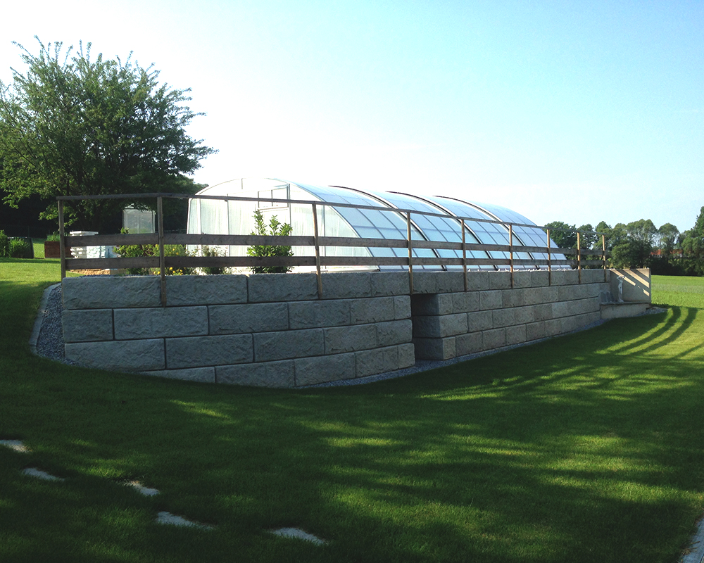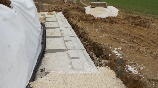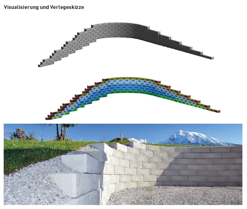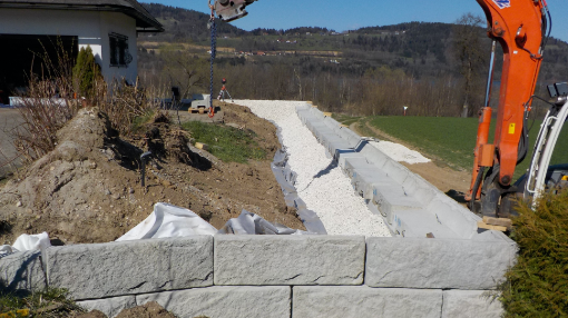 Die Stützwände können mit Hilfe einfacher Baugeräte leicht versetzt werden. Es sind weder Mörtel noch Anker notwendig.
