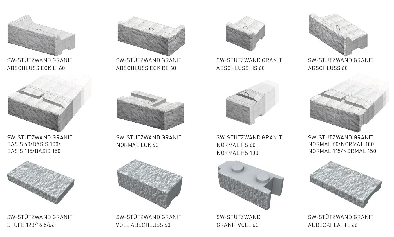Das SW-Stützwandsystem erfüllt höchste technische und ästhetische Ansprüche und bietet unzählige Gestaltungsmöglichkeiten. Auslegung und Typen sind dem SW-Stützwandsystem Folder zu entnehmen.