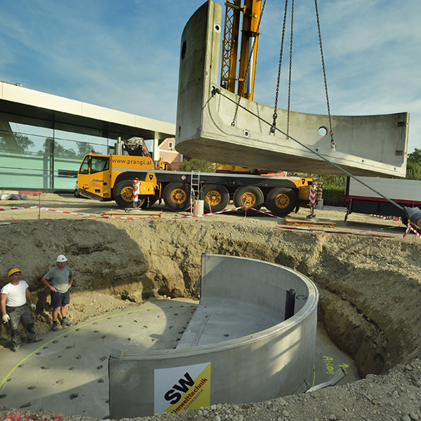 Zur Oberflächenentwässerung des Parkplatzes beim Neubau des SPAR-Marktes in Aschach an der Donau wurde ein Retentionsbecken mit einem Gesamtvolumen von 36 m3 des Typs SW-AQUAstore und ein Verkehrsflächensicherungsschacht versetzt. Diese baulichen Maßnahmen sorgen dafür, dass überschüssiges Oberflächenwasser gesammelt und gereinigt wird und Überflutungen im Parkplatzbereich vermieden werden.
