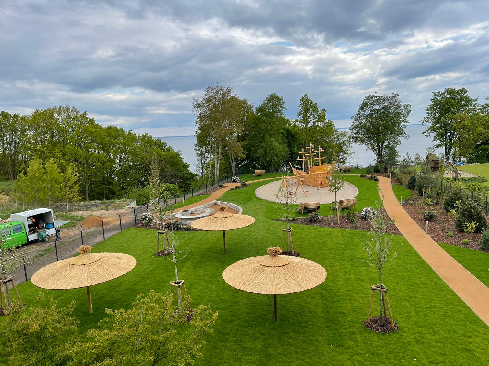 Auf der südlichen Ostsee-Insel Usedom wurde diese SW-Grillstation errichtet, an der die Bewohner der Wohnanlage ihre Freizeit genießen können.