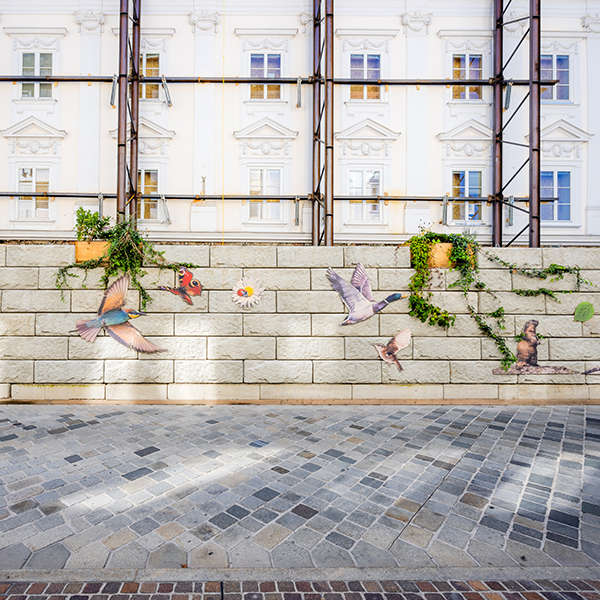 Das SW-Stützwandsystem erfüllt bei diesem Bauvorhaben zwei Funktionen. Einerseits dient das Gewicht der Mauer zur Stabilisierung des Baugerüstes, andererseits konnte durch die Optik der Steine ein Sichtschutz geschaffen werden, der sich hervorragend in das Stadtbild einfügt. Durch das modulare System konnte die Mauer in kürzester Zeit aufgestellt werden, wodurch sich die Behinderung des Stadtverkehrs minimieren ließ.