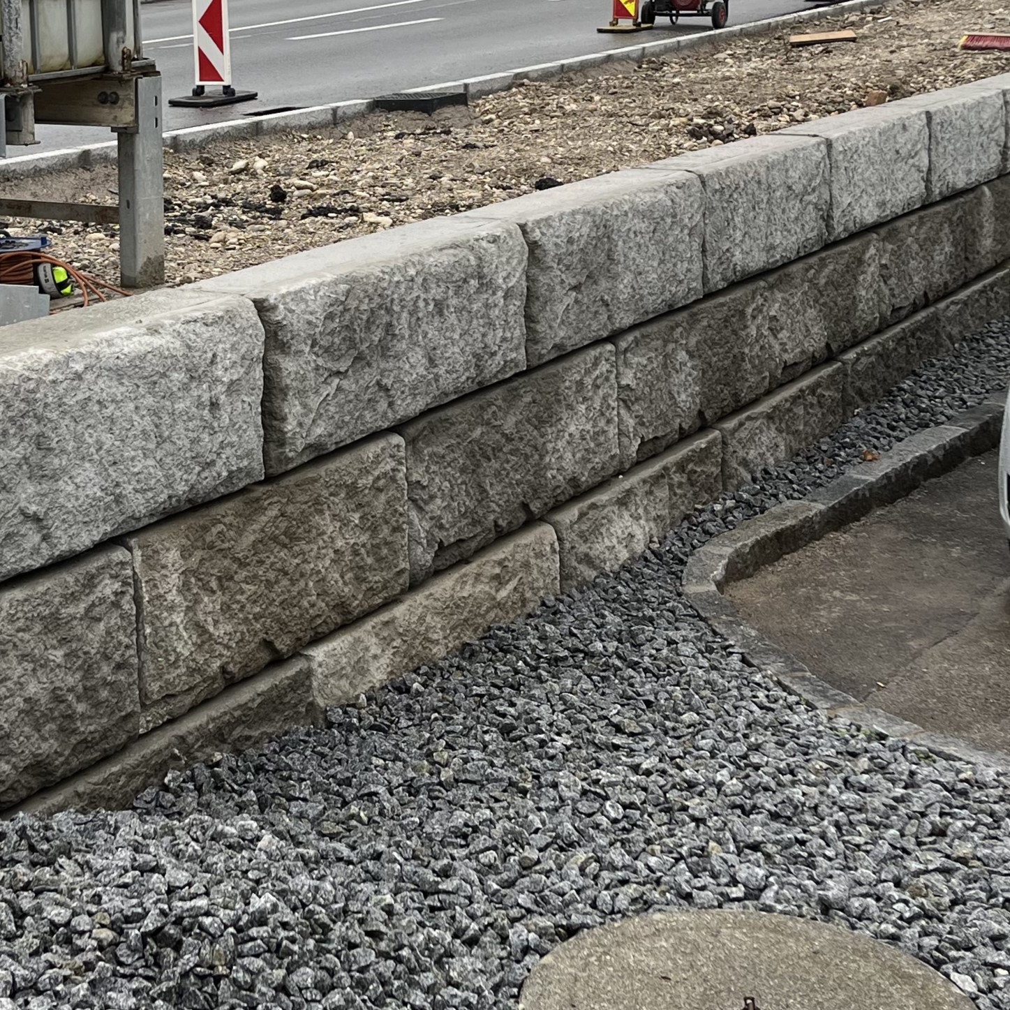 Errichtung einer Stützwand aus Stahlbeton, einschließlich Zaunsockelsteinen, als Abschluss für den Geh- und Radweg entlang der L519 Innbachtalstraße in Wels.