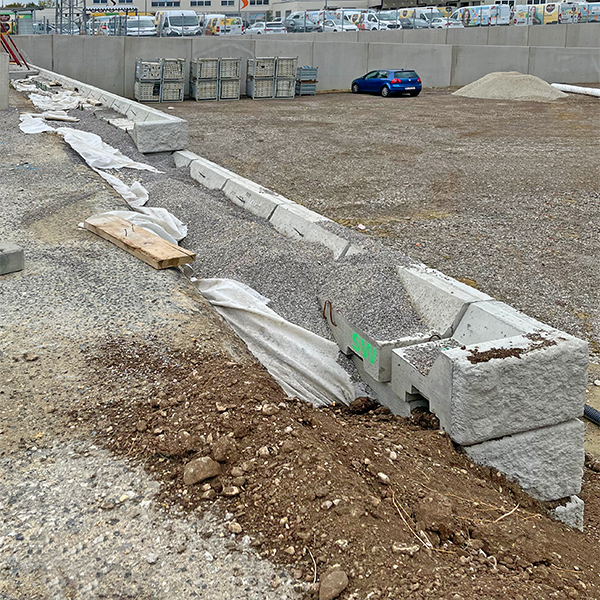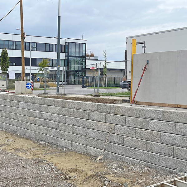 Beim Neubau der Firmenzentrale von Dennree Naturkost in Wien wurde das SW-Stützwandsystem als Stützmauer verbaut.