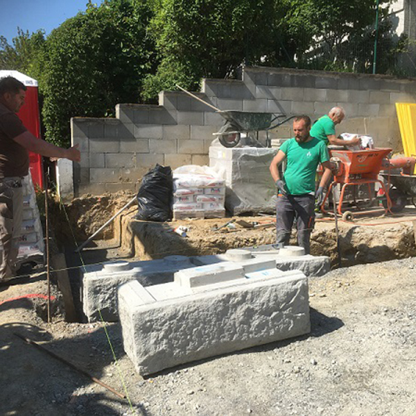 Bei einem Privathaus in Donnerskirchen wurden mehrere Wände mit dem SW-Stützwandsystem errichtet. Drei Wände sind freistehend mit Vollsteinen ausgeführt und weisen beidseitige Sichtflächen auf. Die zwei weiteren Wände sind als Stützwand mit entsprechender Hinterfüllung ausgeführt.