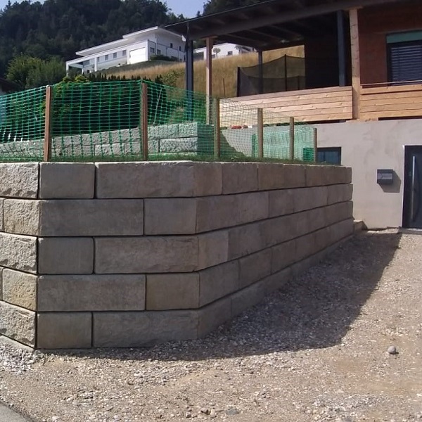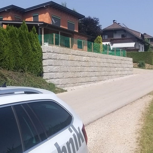 Durch das SW-Stützwandsystem wurde der Niveauunterschieds von 3 Metern zur Straße hin ausgeglichen und dadurch eine nutzbare Gartenfläche geschaffen.