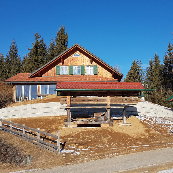 In Großenegg in der Gemeinde Diex kam das SW-Stützwandsystem in Ausführung mit einem Außenbogen zum Einsatz. Um die Sicht auf das schöne Wohnhaus nicht einzuschränken, wurde bewusst auf eine weitere Reihe des SW-Stützwandsystems verzichtet. Somit ist noch genug Platz um eine passende Bepflanzung zu kreieren.