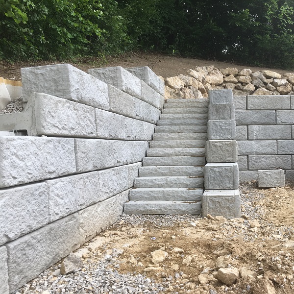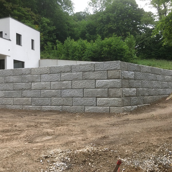 Im Garten eines Einfamilienhauses in Hinterbrühl wurden zwei Stützwände errichtet. Die erste Stützwand dient zur Abstützung des vorderen Gartenbereichs und Schaffung einer ebenen Fläche, die Zweite wurde mit einem Stufenaufgang kombiniert.